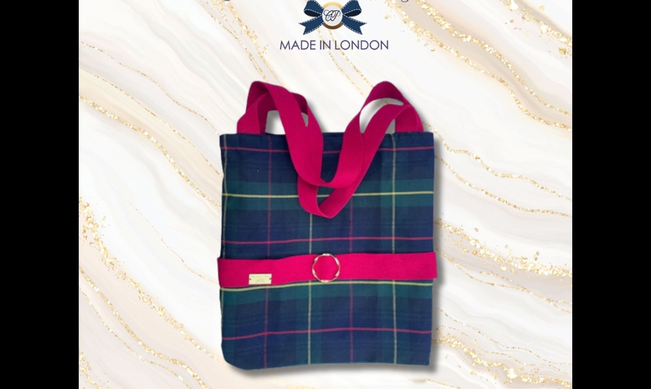 Navy Blue Tartan Bag Made in London